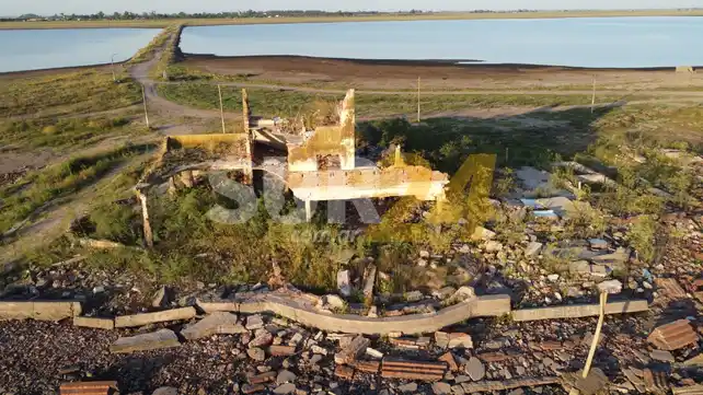 Ruinas del gran Hotel Balneario de Melincué inaugurado en el ’30 y sepultado por la inundación del ’75.