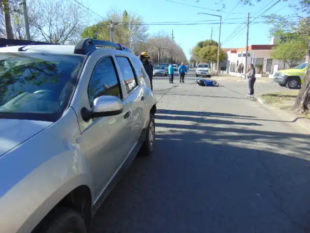 El siniestro tuvo lugar siendo alrededor de las 9.30, en la esquina de Pueyrredón y Francia y los vehículos involucrados fueron un automóvil y una motocicleta.
