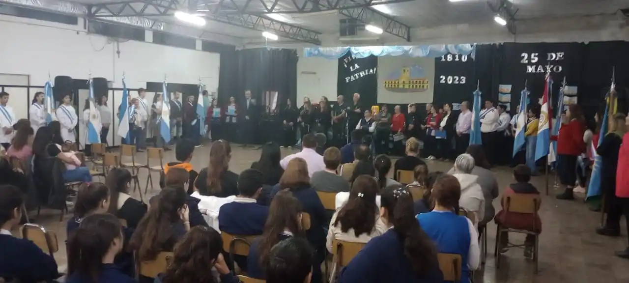 Desde la gestión comunal encabezada por Cesar Bainotti publicaron en redes sociales: “Acto por el 25 de mayo en nuestro pueblo. Homenajeamos a la patria junto a la Escuela Santa Germana Cousin en las instalaciones de la Escuela Fiscal”.