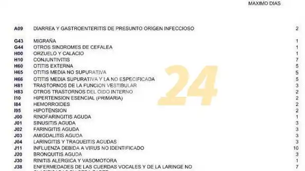 La “tablita” no consideraba enfermedades crónicas o graves de larga duración sino solamente los padecimientos de corto plazo. De esta manera, estipulaba, por ejemplo, 3 días de ausencia para faringitis, sinusitis o bronquitis aguda, 5 para asma u otitis, 7 para conjuntivitis, 2 para hipertensión y sólo un día para cistitis, acidez o caries, entre otras. El mayor número de días (10) lo reservaba para “influenza (gripe) debida a virus no identificado”.