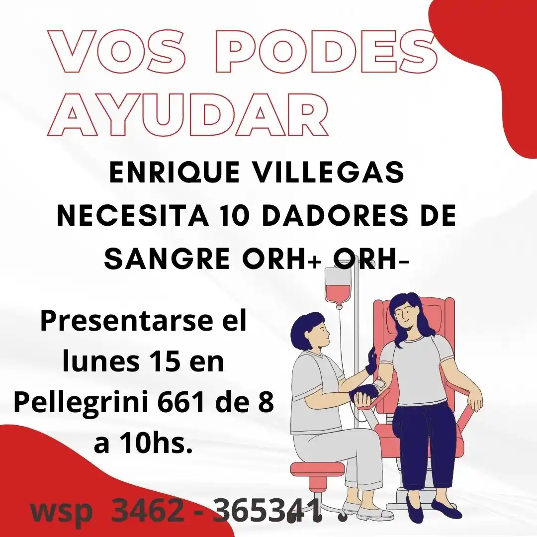 El 25 de abril último, Sur24 divulgó que el 3 de mayo el vecino venezolano Enrique Villegas sería sometido a una intervención quirúrgica en el Hospital Italiano de la ciudad de Rosario, luego de sufrir un infarto en plena calle. En esa misma publicación, a través de este portal se solicitaban 10 dadores de sangre (0 Rh+ o 0 Rh-) que tendrían que presentarse en el centro médico rosarino, y que se obtuvieron con creces.