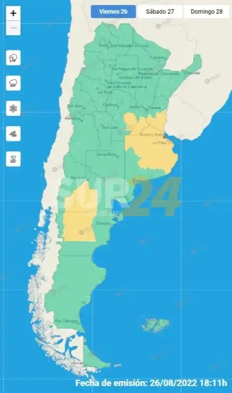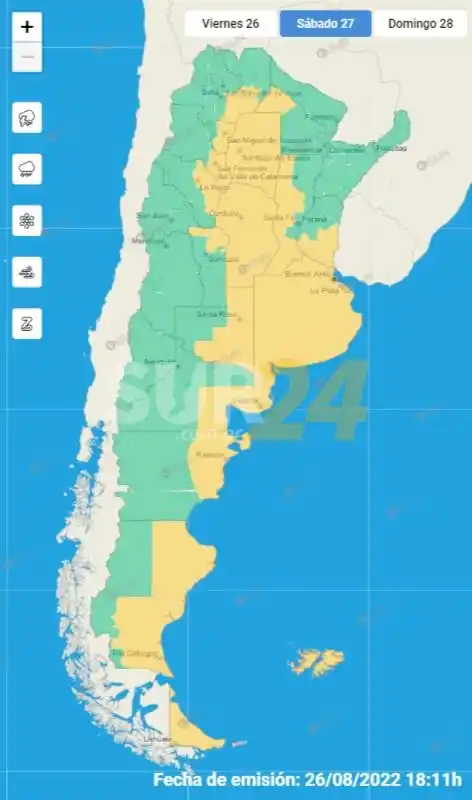 Cabe destacar que el alerta por tormentas rige para la noche de este viernes y madrugada de sábado, mientras que el de vientos para la mañana de este 27 de agosto.