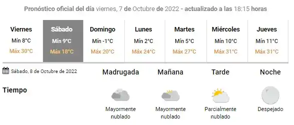 En tanto el domingo, la temperatura descenderá a -1ºC en horas de la madrugada y llegará a los 20ºC durante la tarde que se espera que esté soleada.