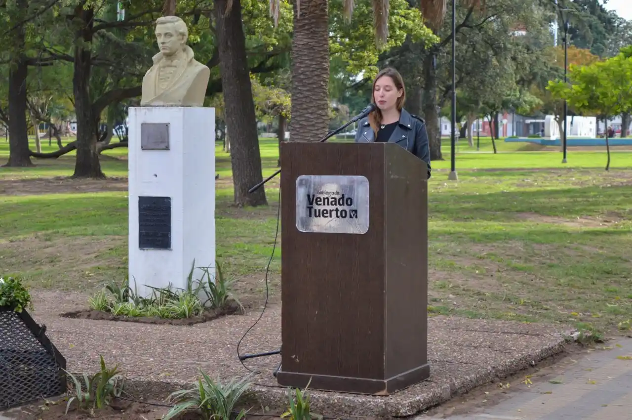 Posteriormente, el intendente Leonel Chiarella y el presidente de la Asociación Regional de Trabajadores y Trabajadoras de Prensa (Artrap) colocaron una ofrenda floral (ver imagen principal) al pie del busto de Moreno.