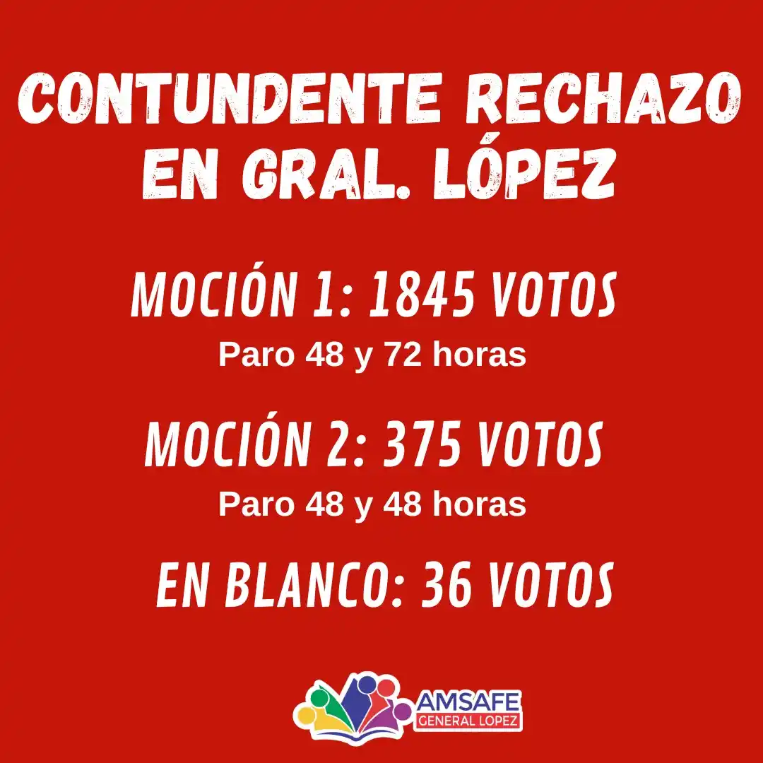 Más de 2.200 docentes nucleaos en Amsafe General López rechazaron la propuesta salarial realizada por el Gobierno provincial y votaron distintas modalidades de medida de fuerza. La noticia se conoció en la mañana de este viernes y deja en claro el camino que seguirán gran parte de las seccionales, lo que desembocará en el no inicio del ciclo lectivo el próximo miércoles 1° de marzo.