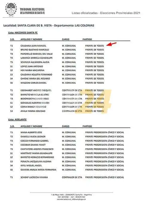 Caudana es candidato a la reelección por la presidencia comunal de Santa Clara de Buena Vista, en el departamento Las Colonias de la provincia de Santa Fe.