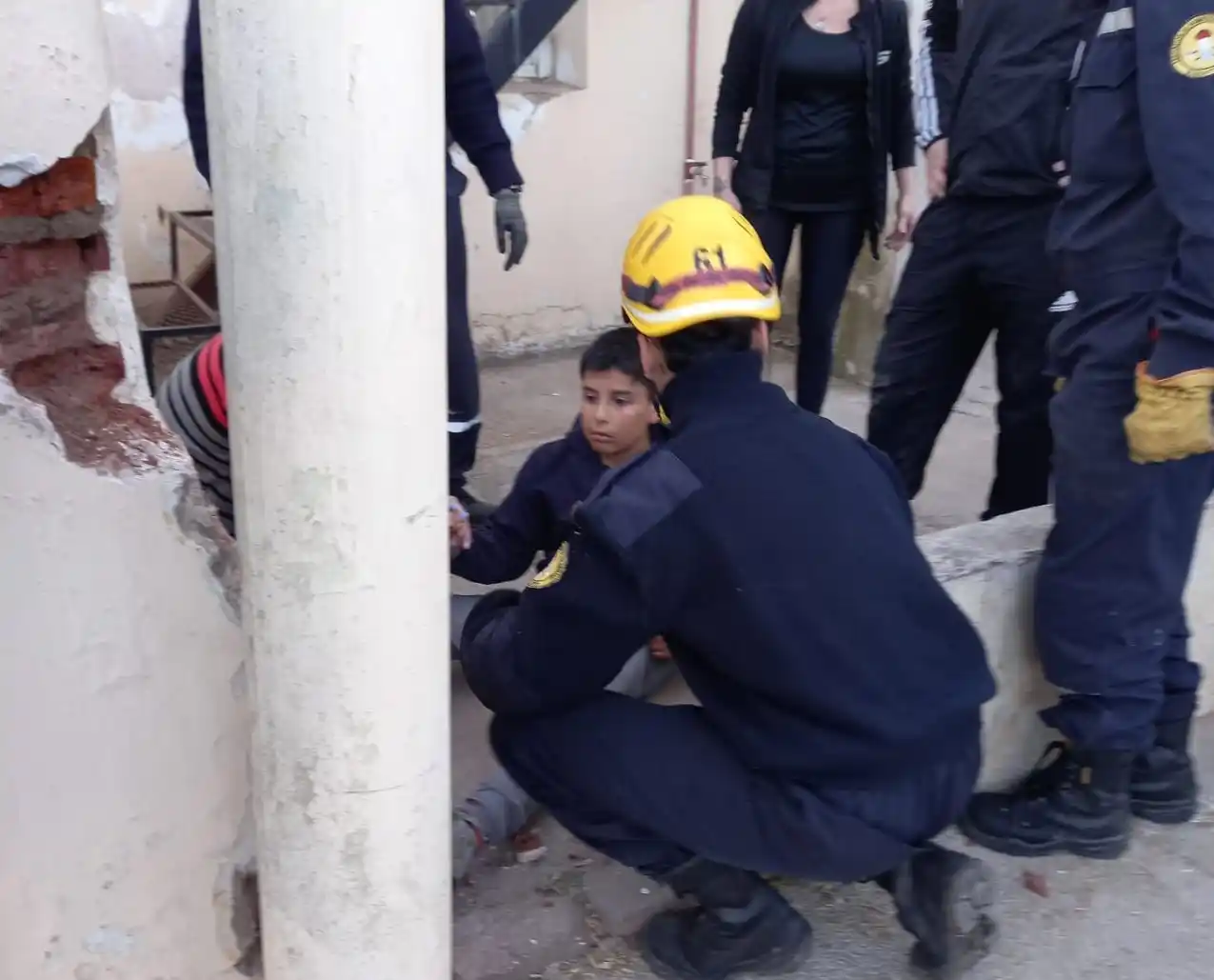 El incidente ocurrió en la tarde de este viernes, en Balcarce al 1200, donde un niño quedó atrapado a la altura de su rodilla derecha entre una pared y una columna de electricidad.