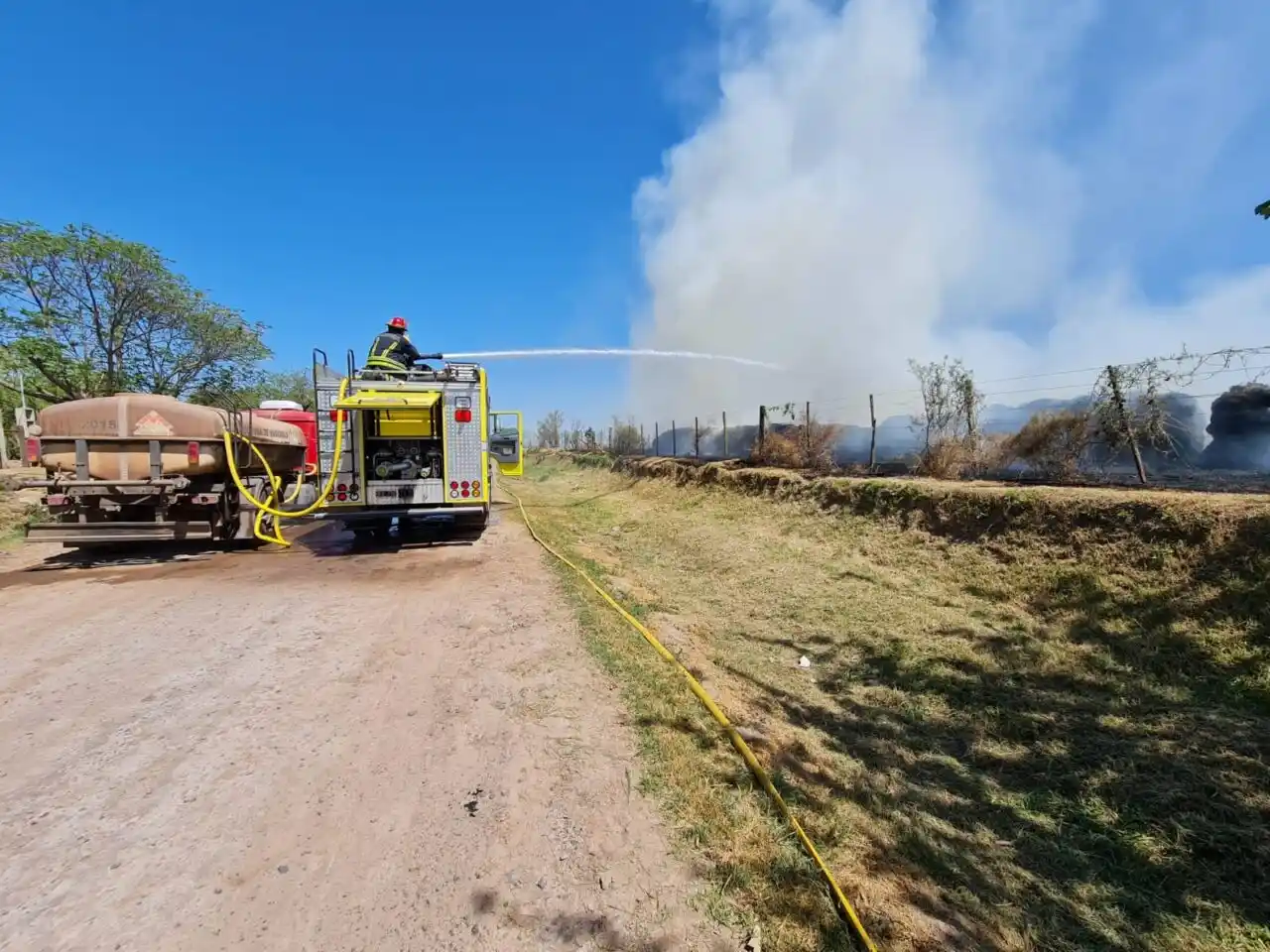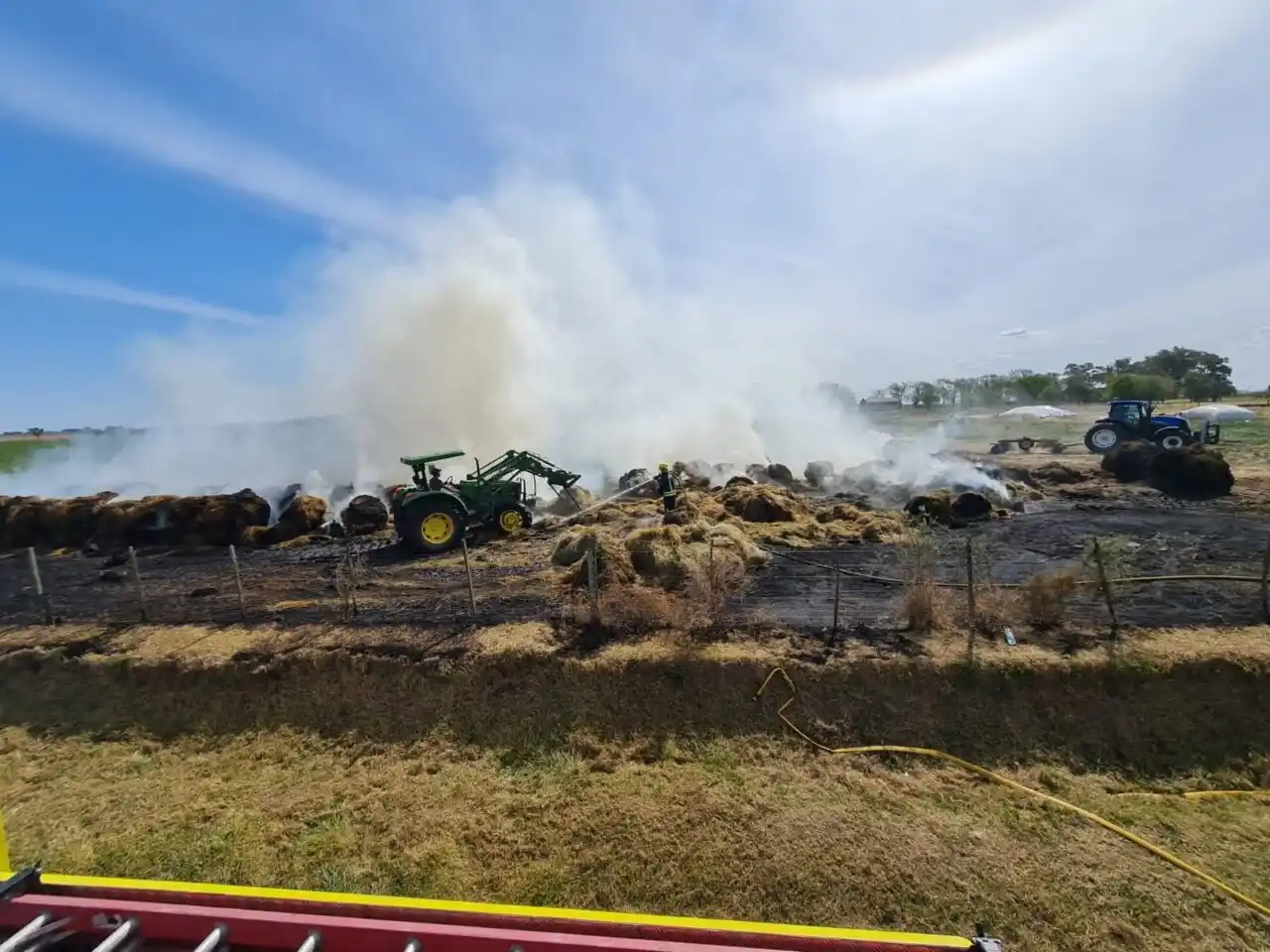 Este miércoles, los bomberos de Venado eran convocados a Pueyrredón y Milán, de la localidad de Maggiolo, donde trabajaron de 11.24 a 16.35 para combatir el fuego en 50 rollos de fardo que se estaban quemando.
