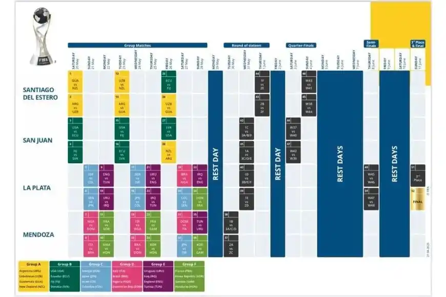 Luego del sorteo del Mundial Sub 20 donde Argentina quedó como cabeza del grupo A, se conocieron también los días, horarios y estadios en los que jugará el combinado nacional.