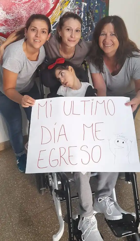 Romina también recuerda que, en los inicios, llevaba a Cande en moto, ya que “no teníamos otro medio de transporte” y desde Canea con la ayuda de la asistente social lograron que la pase a buscar el transporte municipal, “con gente muy buena como el Tata que es el chofer y Clau que es la acompañante; desde que se sube a la trafic con su silla, mi hija está protegida, acompañada y contenida”.