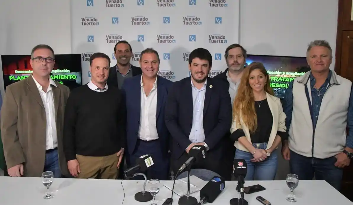 Junto a Chiarella e Iraola, compartieron el anuncio ante la prensa directivos del grupo empresario (Juan Manuel Iraola, Leonardo Grendene y Federico Hellemeyer), el senador Lisandro Enrico, funcionarios del Ejecutivo, trabajadores de la planta y voluntarios del programa Reciclar Venado.