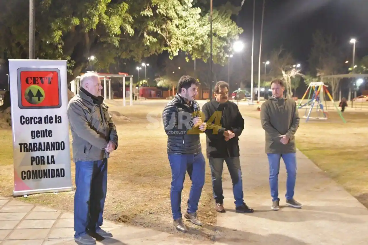 Con la presencia del intendente Leonel Chiarella, autoridades de la Cooperativa Eléctrica (CEVT), miembros del Gabinete municipal, concejales, integrantes de la comisión vecinal y vecinos del barrio Bernardino Rivadavia, fueron inauguradas esta noche las luminarias de la plaza España.