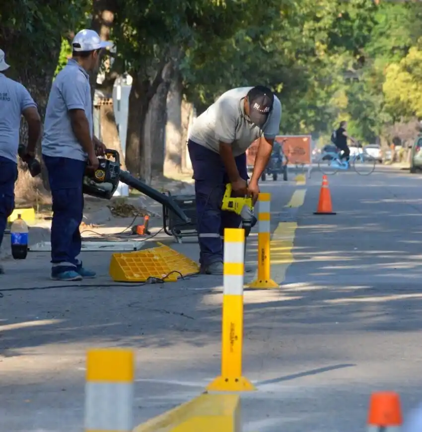 Personal municipal trabaja en la colocación de los separadores, además de pintura y cartelería.