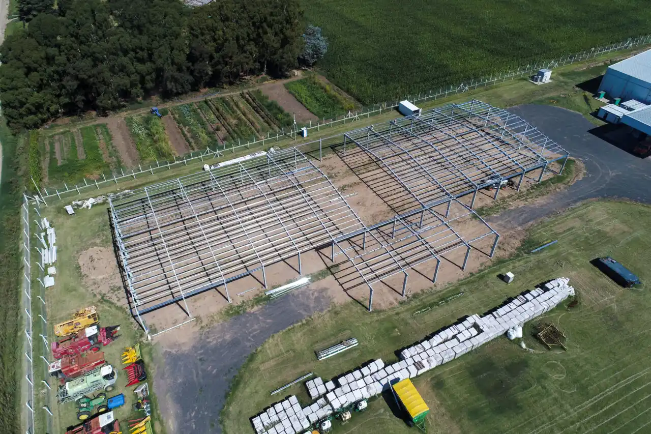 Sobre ruta nacional 33, la firma venadense Conformados Metálicos construye una imponente estructura en el establecimiento Vasco Juan.