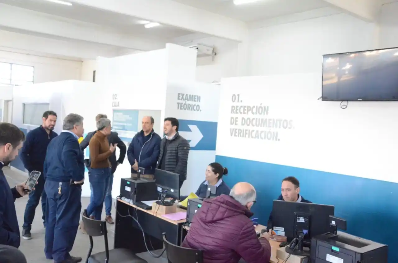 Corral y Chiarella, junto a otros funcionarios locales, durante la recorrida por la Oficina de Emisión de Licencia de Conducir.