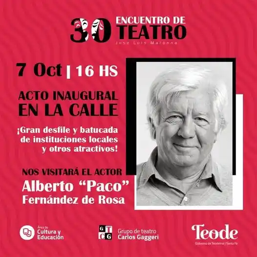 Aprovechando el próximo fin de semana extra largo que comenzará el viernes 7 y se extenderá hasta lunes 10 de octubre, la localidad de Teodelina recibirá sobre tablas a figuras del arte teatral para festejar las tres décadas del Encuentro Irterprovincial de Teatro “José Luis Maronna”, organizado por el grupo de Teatro Carlos Gaggeri y la Comuna de Teodelina.