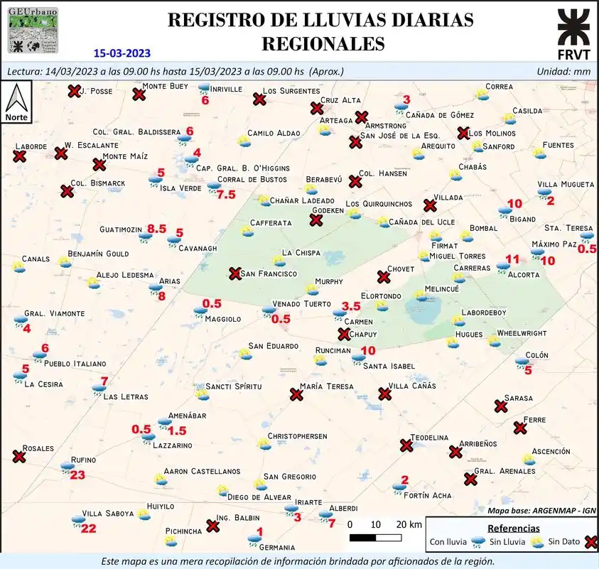 La extrema sequía que se está viviendo atenta contra este estudio, ya que los datos que se obtienen son escasos. “En las lluvias que se presentaron este martes hicimos el mapa, aunque fueron pocas las localidades que registraron algún milimetraje, como el caso de Rufino que llegó a los 25 mm. Vemos que los focos de tormenta son muy localizados y no con un alcance regional. Incluso pasó un mes de la última lluvia”, indicó.