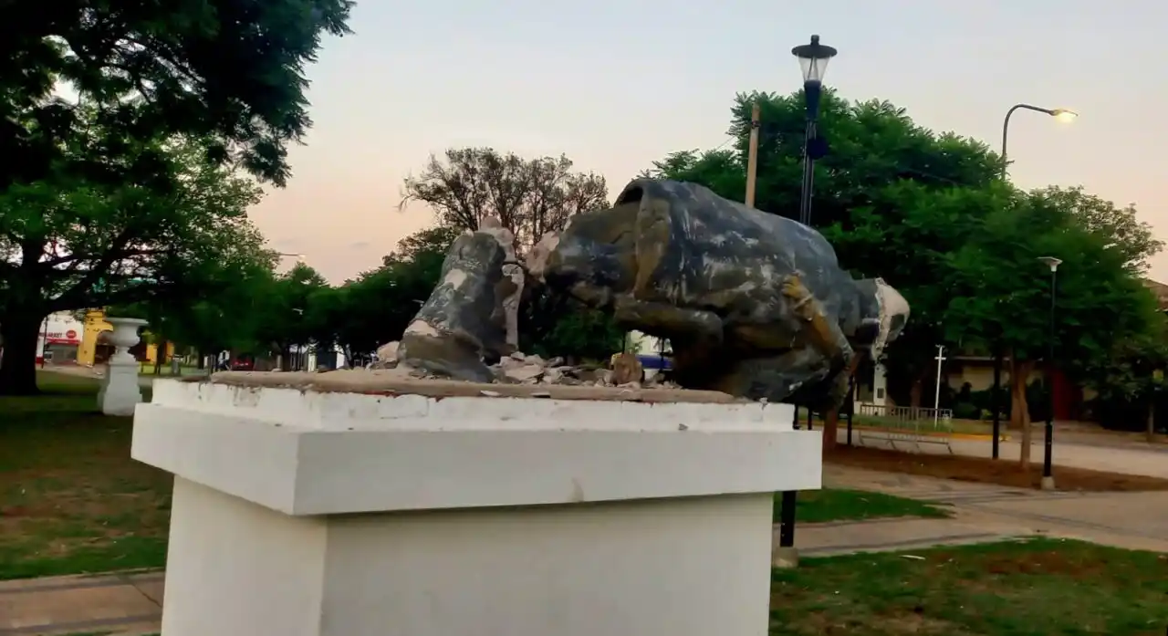 En la madrugada de este martes vandalizaron el Monumento al Bombero Voluntario ubicado en Plaza San Martín en inmediaciones de 9 de Julio y Avenida Estrugamou, generando daños irreparables en la estructura.