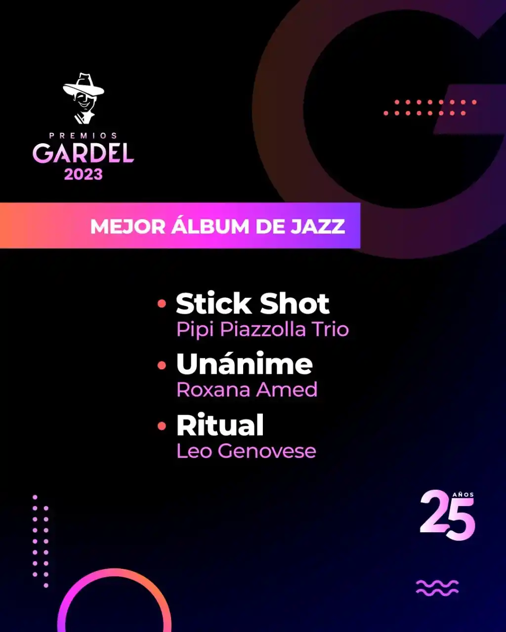 En esta categoría, el compositor estará compitiendo con: Stick shot – Pipi Piazzolla Trío y Unánime – Roxana Amed.