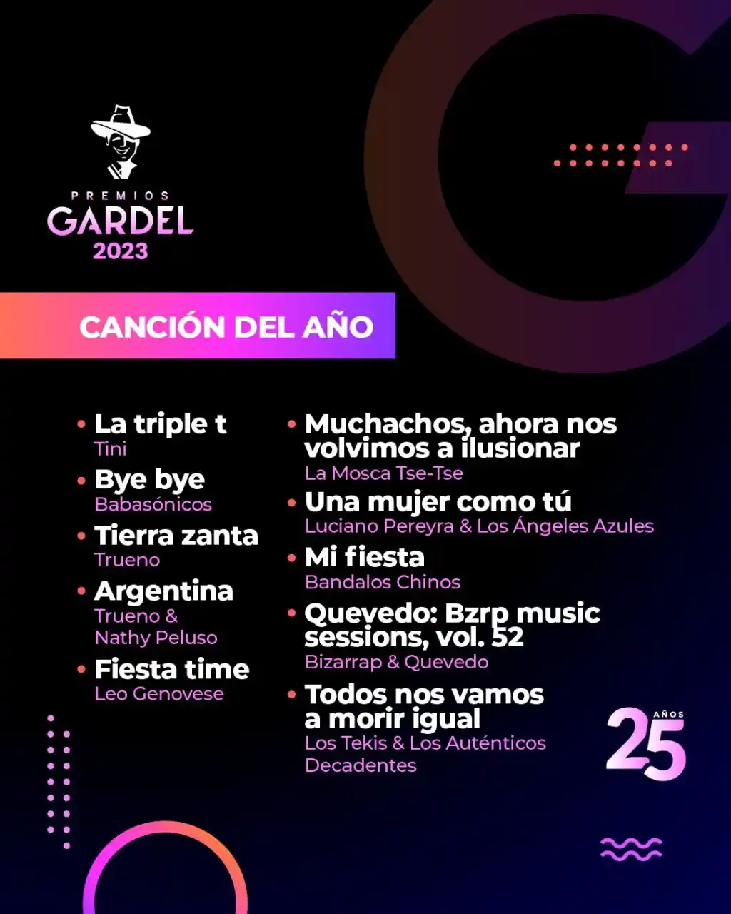 Las demás nominaciones a los Gardel 2023 (16/05)