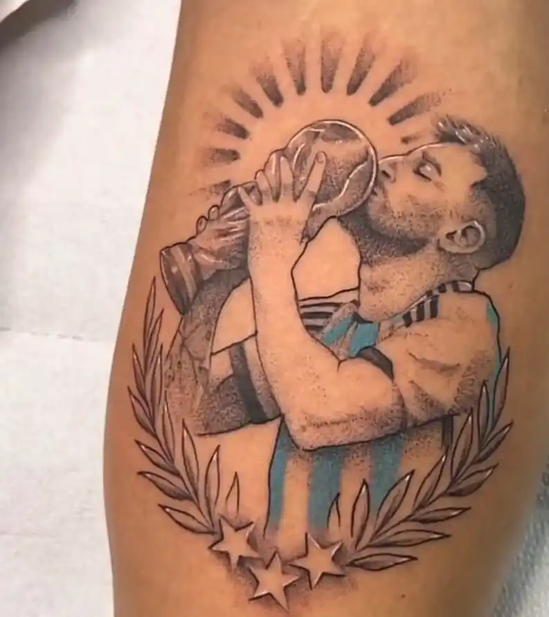 Ya sea para cumplir una promesa o para que perdure el recuerdo con el paso del tiempo, miles de argentinos decidieron hacerse tatuajes que simbolicen un hecho histórico como fue la Selección de fútbol haya ganado la tercer Copa del Mundo en Qatar. La imagen de Leo Messi alzando la copa, la fecha, la bandera Argentina, el escudo de la AFA y las tres estrellas que representan los mundiales obtenidos, son algunos de los diseños que ya están en la piel de los fanáticos.