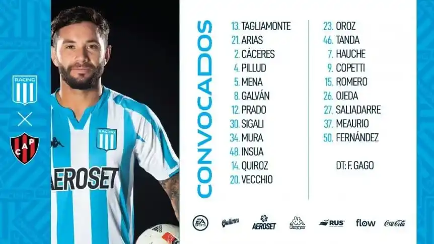 Este martes Racing jugará ante Patronato a las 21:30 hs. como local por la fecha 19, y Emiliano fue citado por primera vez para formar parte del plantel superior.