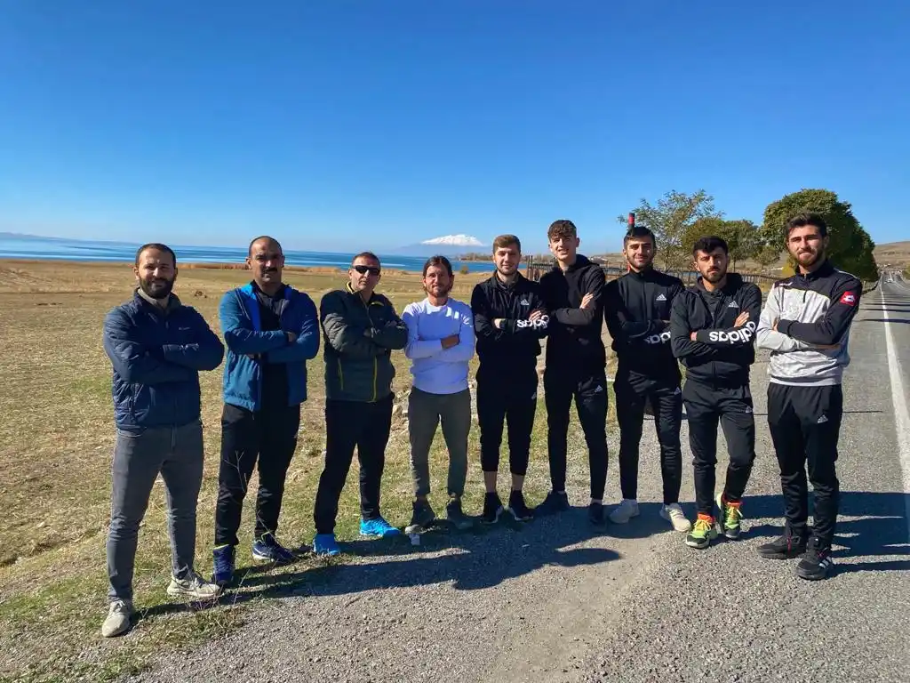 Foto con un equipo de voley de la ciudad kurda de Hakkari, Turquía que lo levantó en la ruta, y terminó pasando todo un día con ellos