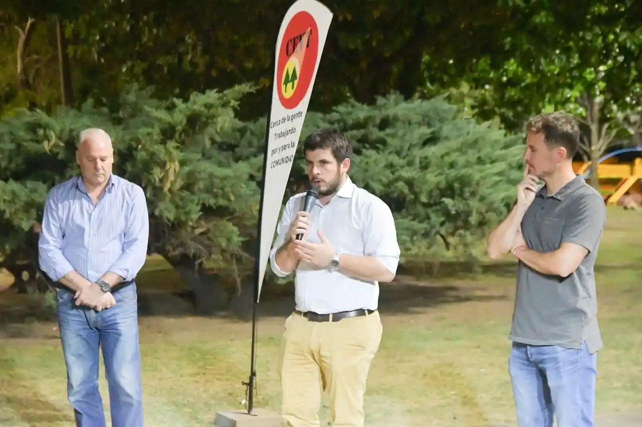 Con el encendido simbólico de las luces, a cargo del intendente Leonel Chiarella, el presidente del Concejo, Juan Ignacio Pellegrini, y el presidente del Consejo de Administración de la Cooperativa Eléctrica (CEVT), Ademar Aznar, quedó inaugurada en la noche de este miércoles la nueva iluminación led de la plaza De la Democracia en el barrio Centro II.