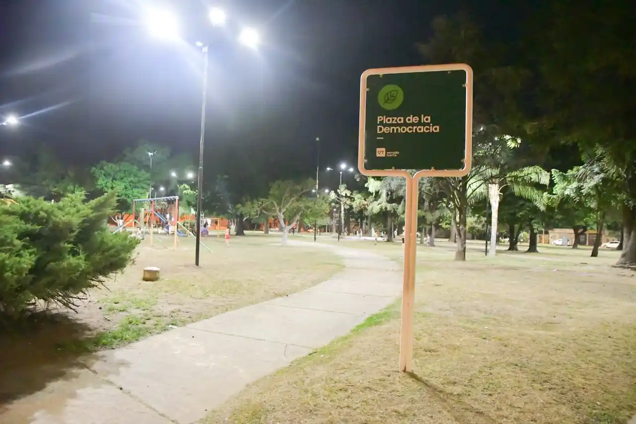 El gobierno municipal y la CEVT inauguraron nuevas luces led en la plaza De la Democracia