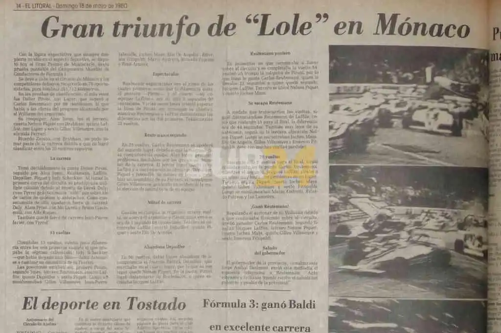 Una de sus victorias más recordadas, por el escenario suntuoso y por la presencia en la premiación de la nobleza del Principado, “Lole” la consiguió el domingo 18 de mayo de 1980, en el Gran Premio de Mónaco.