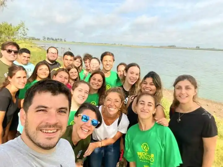 Chiarella, la asesora Mory, la subsecretaria Galnares, y el equipo de Reciclar Venado, en el ojo de agua. Foto: Gentileza