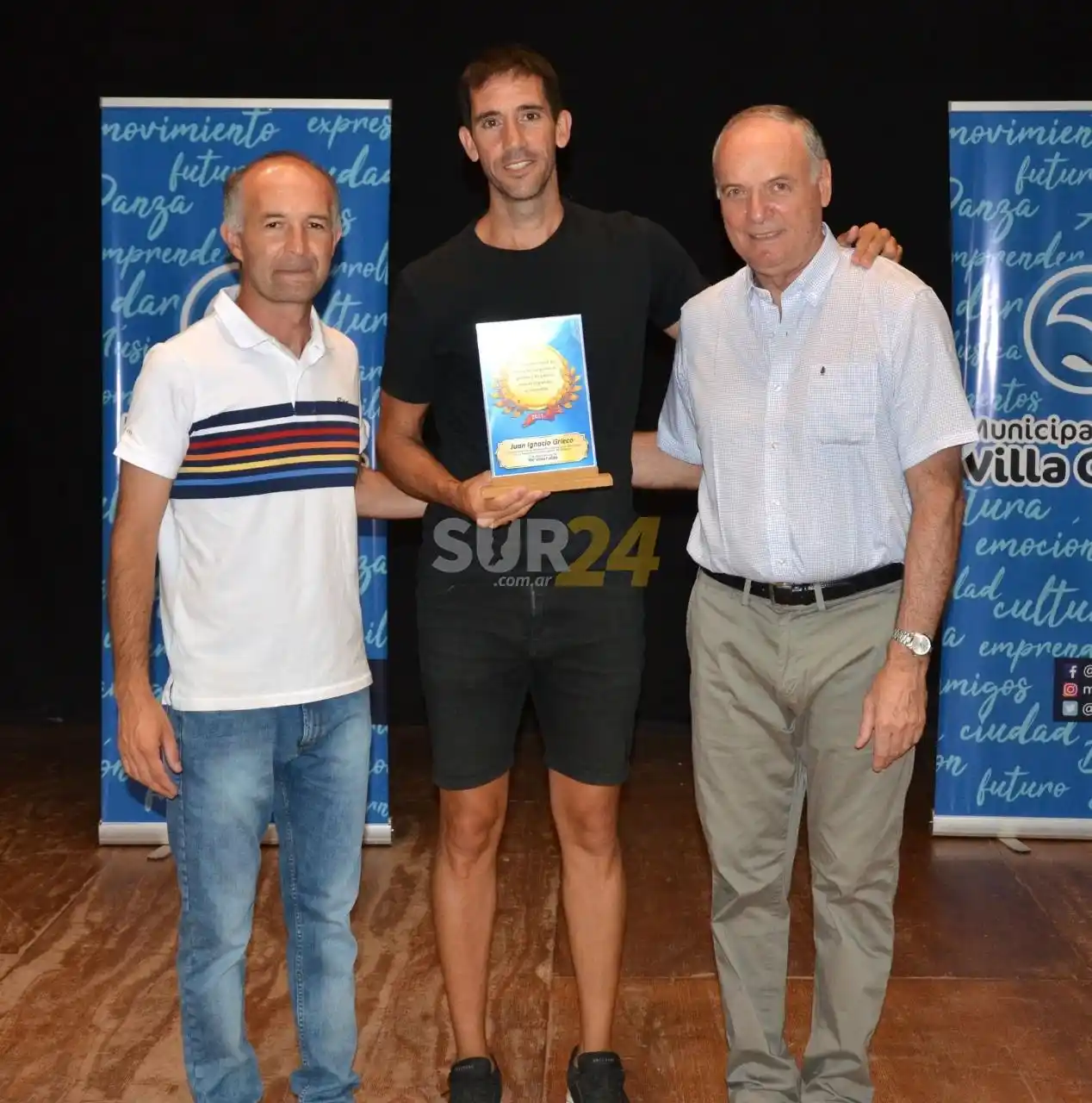 Luciano Ceirano y Martín Isanta reconocidos por el director de Deportes, Marcelo Rodriguez y el intendente Norberto Gizzi.