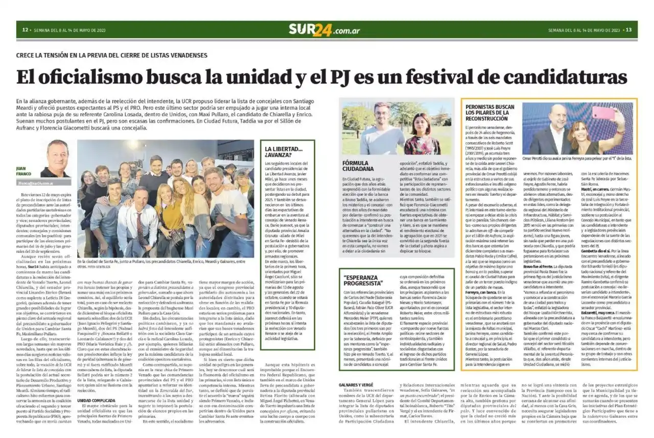 También trascendieron nombres de la UCR del departamento General López para integrar la lista de diputados provinciales pullaristas en Unidos, como la subsecretaria de Participación Ciudadana y Relaciones Internacionales venadense, Sofía Galnares, “en un puesto encumbrado”; el presidente del Comité Departamental boinablanca, Roberto “Tito” Vergé y el ex intendente de Firmat, Carlos Torres.