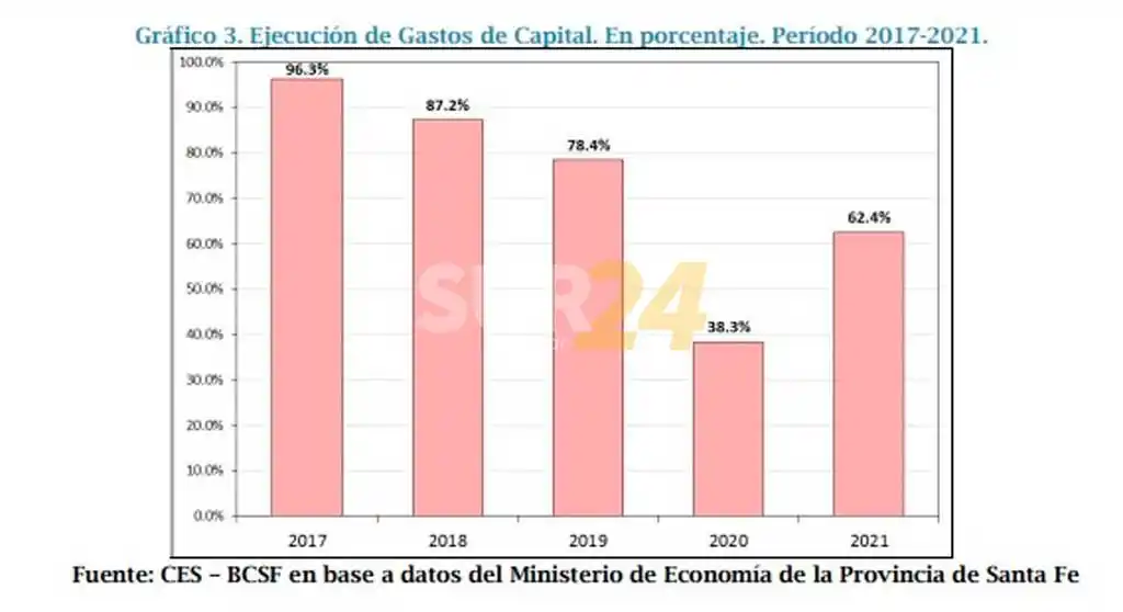 “Esto se debió fundamentalmente a los efectos de las medidas sanitarias de prevención por la pandemia de COVID-19. En 2019, el porcentaje de ejecución estuvo en torno al 78,4%. En 2021 la ejecución de los gastos de capital fue del 62,4%”.