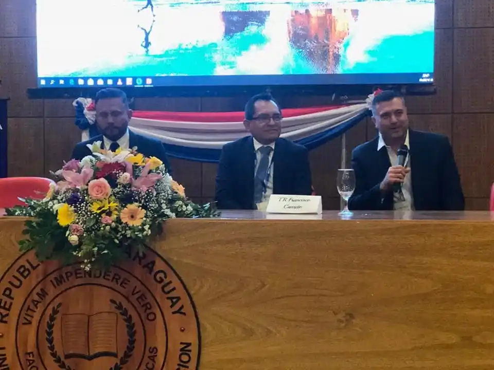 Martín Managó junto a Santos Chero Pisfi (centro) durante un congreso en Paraguay / crédito gentileza
