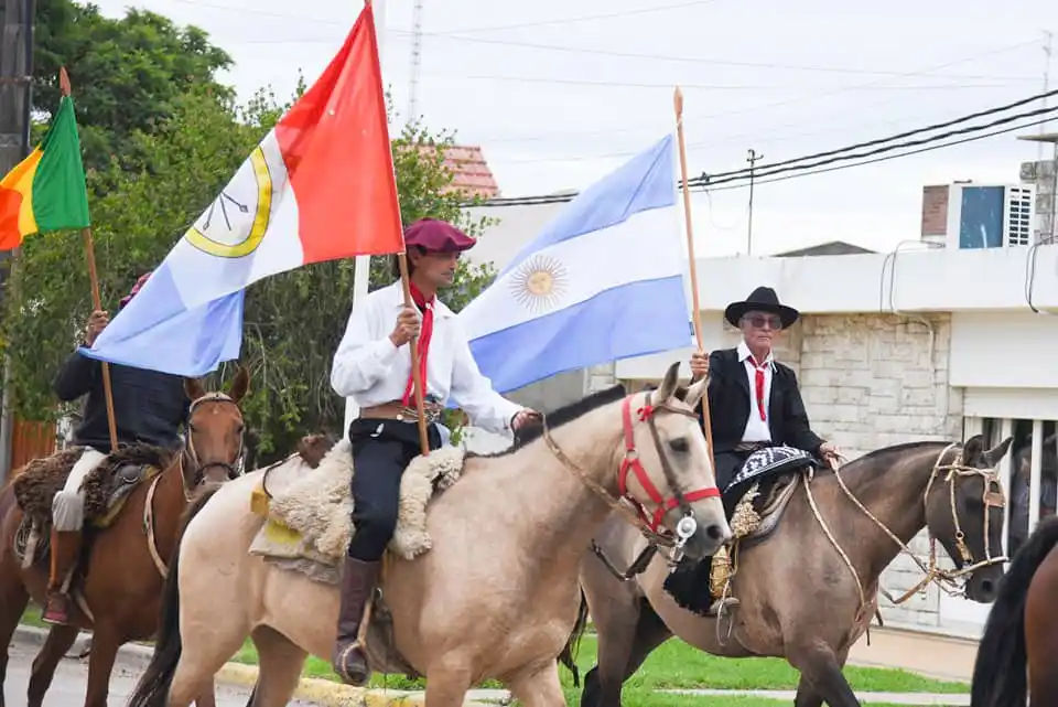 Antes de la ceremonia, el ex Combatiente de Malvinas que reside en esa localidad, Daniel Jordán, se acercó a la Residencia de Adultos Mayores para disfrutar de un desayuno especial con los residentes y luego, junto a la Agrupación Tradicionalista “El Bozal”, se realizó un desfile hasta la Plazoleta Loretto, lugar dónde se llevó a cabo el acto.