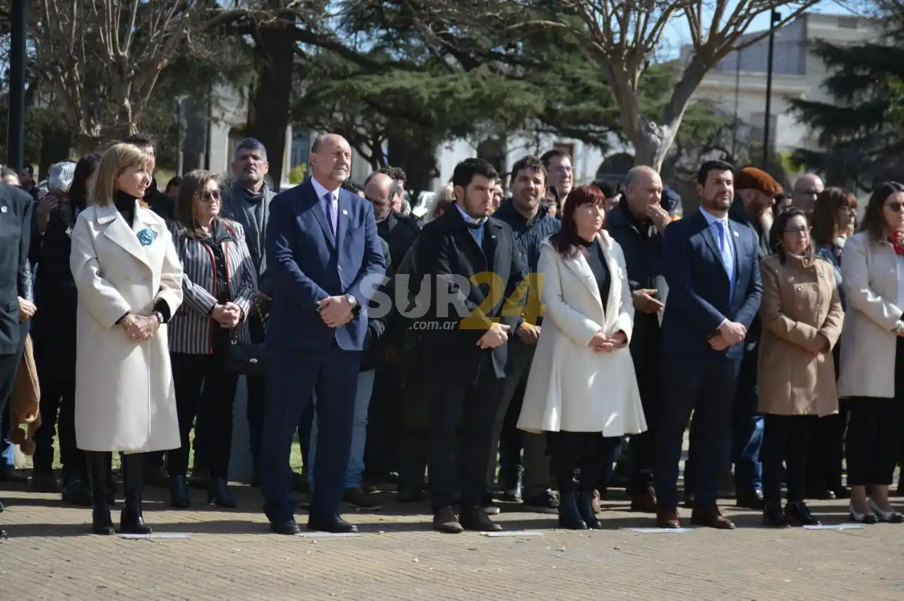 En el acto patrio, además del gobernador Perotti y la vicegobernadora Alejandra Rodenas, se destacaron los ministros de Gestión Pública, Marcos Corach; y Gobierno, Justicia y Derechos Humanos, Celia Arena, el diputado nacional Marcos Cleri; las diputadas provinciales Paola Bravo y Georgina Orciani, el secretario provincial de Integración y Fortalecimiento Institucional, José Freyre; el presidente del Concejo Municipal, Juan Ignacio Pellegrini; y delegaciones de la Asociación Sanmartiniana y del Instituto Belgraniano.