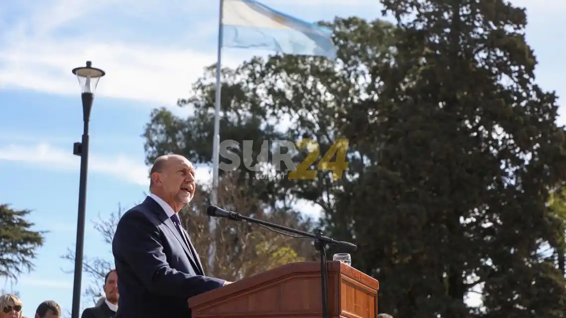 En su discurso, que dedicó en su mayor parte a exaltar las virtudes personales, políticas y militares del homenajeado San Martín, el intendente Leonel Chiarella inició con un inesperado agradecimiento al gobernador Perotti, a quien acompañó en la oportunidad la vicegobernadora Alejandra Rodenas.