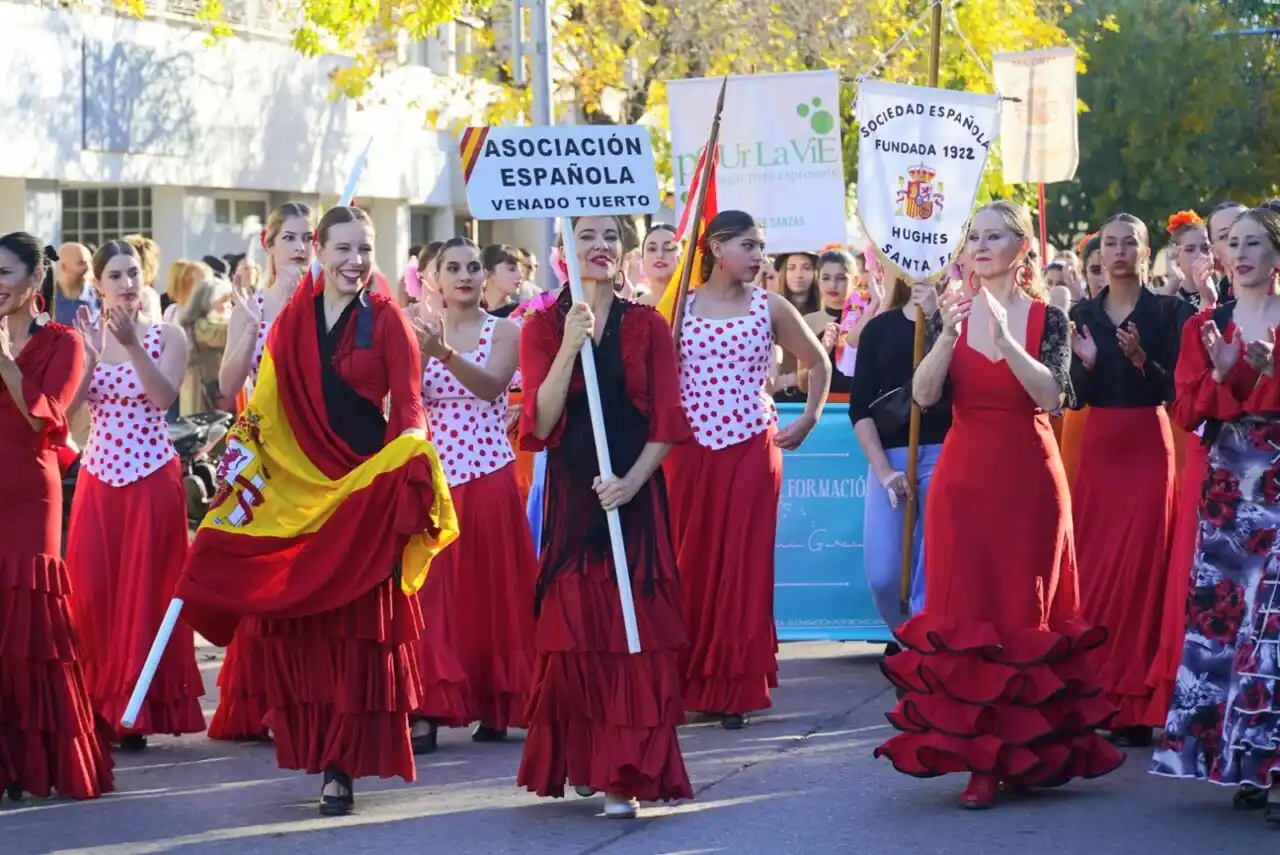 Participaron sociedades españolas de Venado, Hughes, Alcorta, Bigand, Wheelwright, estudio de danzas de Elortondo y los organizadores, el Estudio de Danzas “Marcela Arrieta”. Además, acompañaron integrantes del Club de Autos Antiguos y un carro típico de Berabevú, propiedad del Sr. Walter Caro.