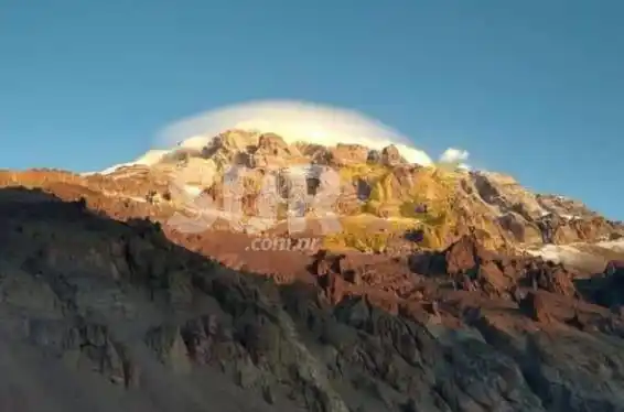 Pero a pesar del buen pronóstico y de las buenas condiciones de aclimatación de los tres, tuvieron que relegar el sueño a casi 900 metros de llegada. Y es que en esta montaña, por la gran dimensión que tiene, se da un fenómeno climático local en la zona cumbrera. Lo llaman “El Hongo”, porque la forma lenticular sobre la cima, así lo hace parecer desde la lejanía.