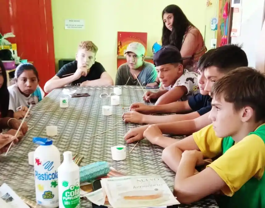 Se trata del taller “Arte en Papel”, dictado por los dueños de la marca, Vanesa y Walter, quienes en las clases les enseñan sobre la técnica de cestería en papel y la economía circular.