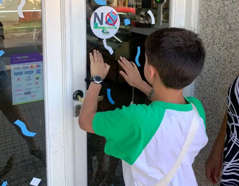 En ese marco, con el objetivo de concientizar sobre la temática e incentivar a que los vecinos usen bolsas reutilizables para reducir las descartables, se están entregando adhesivos y bolsas reutilizables en los negocios.