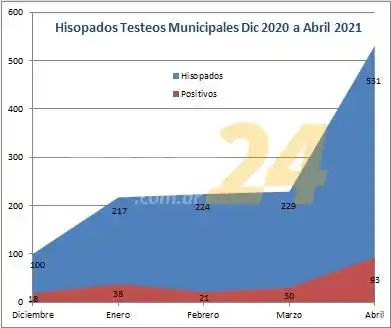 Cabe destacar que sólo en abril, se efectuaron 591 tests, detectándose 93 vecinos con resultado Covid-19 positivo en ese mes. La labor de testeo se desarrolla los martes y viernes de 14:30 a 16 horas en el Playón del Ferrocarril, en cercanías al Galpón del Pueblo.