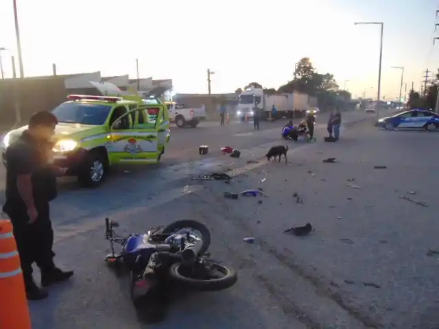 Se trató de una colisión entre un automóvil Ford Focus y una motocicleta Honda Titan 150cc, donde Bomberos al llegar procedió a inmovilizar a los dos tripulantes del rodado menor, uno de ellos en forma completa, mientras que el otro tripulante se inmovilizó en forma parcial para ser trasladados por 2 ambulancias del SIES hacia el Hospital.