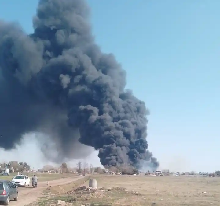 Lectores de Sur24 pasadas las 14 horas comenzaron a enviar fotografías tomadas desde distintos barrios de Venado Tuerto donde es posible visibilizar la enorme columna de humo.