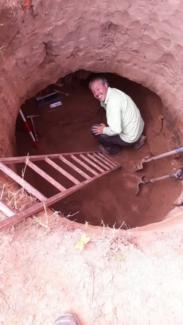 Este viernes, a las pocas horas de iniciado el trabajo, Rey dialogó con Sur24 y contó que el hallazgo “se produjo hace poco más de una semana, mientras se cavaba para la construcción de un pozo ciego dentro del lote. El dueño de casa, de inmediato, ingresó la denuncia a un link (aplicación), que es como se debe proceder ante el descubrimiento de restos fósiles o arqueológicos. Y el arquitecto Javier Armentano, a cargo de la Subsecretaría de Gestión Cultural, nos envió a nosotros a Venado Tuerto para gestionar el rescate”.