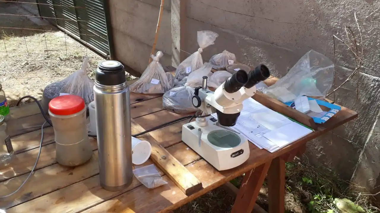 Primeras mediciones de tamaño y peso de las piezas en el “laboratorio de campo”.