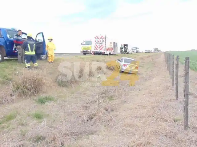 “El automóvil termina despistando y volcando en la banquina”, detalla el parte agregando que al llegar al lugar “los tres ocupantes del automóvil se encontraban fuera del vehículo”.