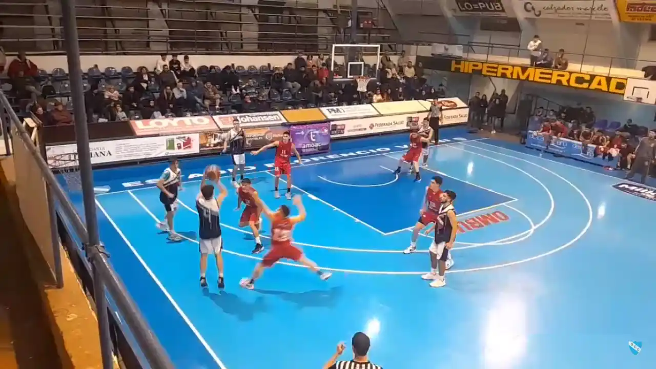 El lanzamiento de Mateo Ceci que no entró y que le podría haber dado la victoria a Venadense. Foto: captura transmisión del partido