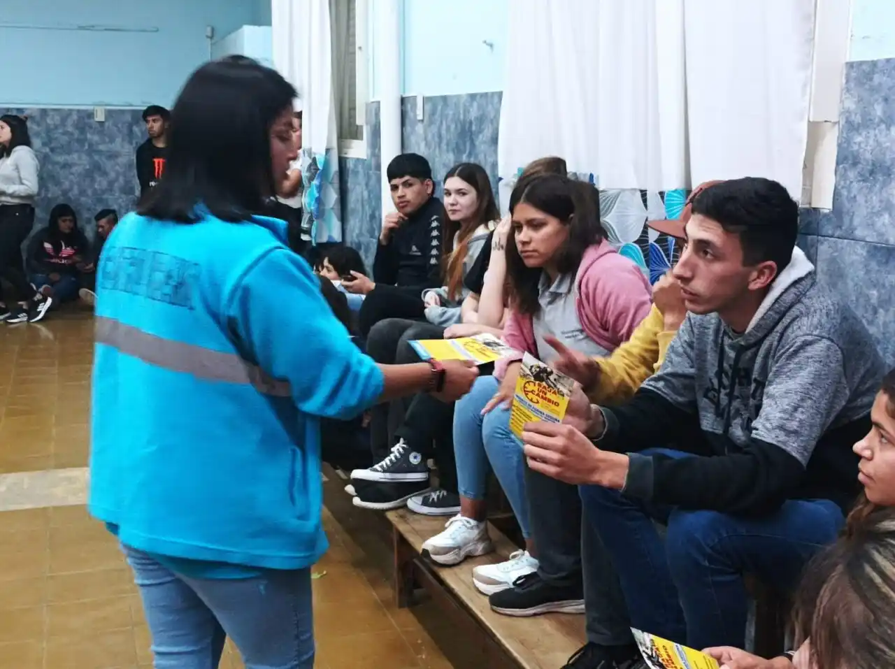 En el marco de la campaña de concientización “Bajá un Cambio”, el equipo de educación y capacitación vial de la Secretaría de Control Urbano y Convivencia brindó ayer un taller para alumnos de la Escuela de Enseñanza Media Nº 238 y su anexo.